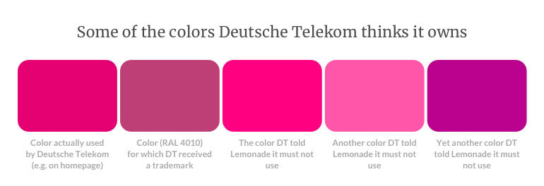 Como deferencia con el tribunal, Lemonade realizó los cambios de color en Alemania, pero, desafiando a Deutsche Telekom, Lemonade decidió cuestionar el ámbito de su marca «magenta», empezando en Francia y Alemania, así como la propia validez de su marca «magenta» en toda Europa.
