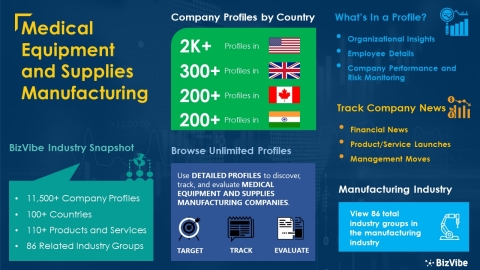 LONDON--(BUSINESS WIRE)--BizVibe has expanded the number of companies which can now be discovered and tracked for their medical equipment and supplies manufacturing industry group.