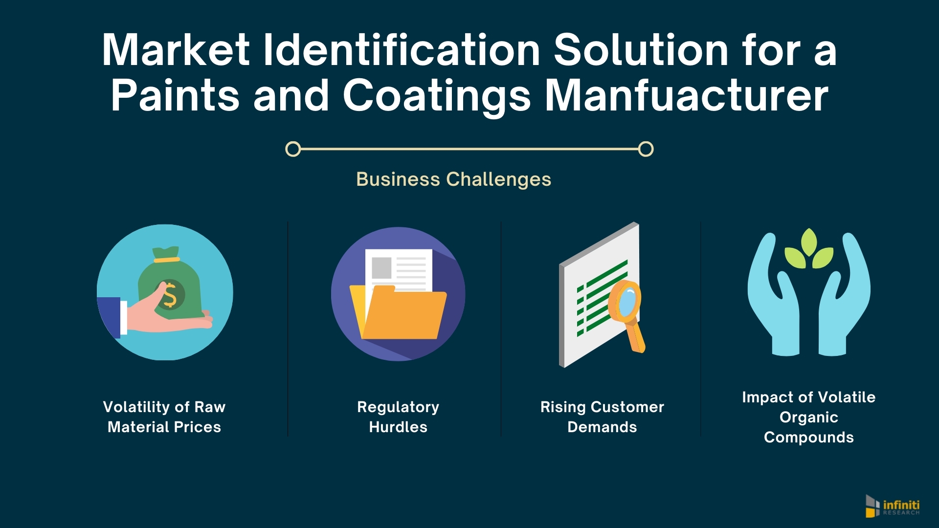 To help the paints and coatings manufacturing market player expand their operations, Infiniti’s market identification experts developed the following comprehensive approach: