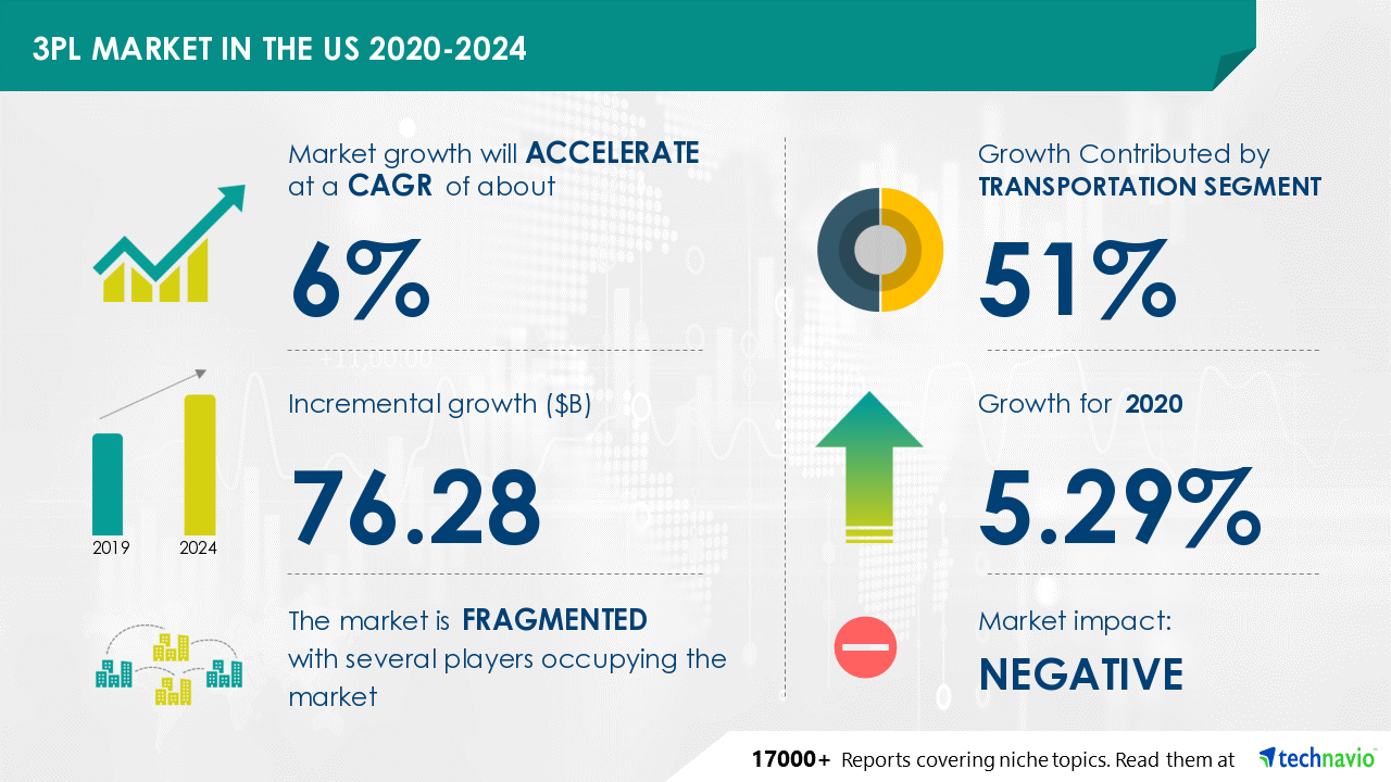"One of the primary growth drivers for this market is the increasing use of multimodal transport,” says a senior analyst for the industrials industry at Technavio. The vendors should focus more on the growth prospects in the fast-growing segments while maintaining their positions in the slow-growing segments. As the markets recover, Technavio expects the 3PL market size to grow by USD 76.28 billion during the period 2020-2024.