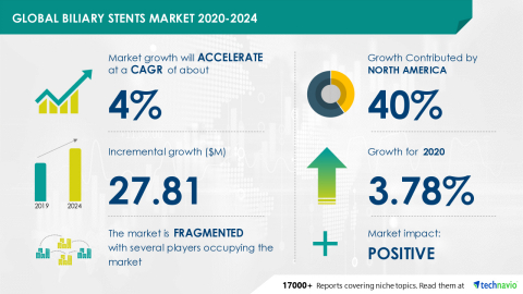 LONDON--(BUSINESS WIRE)--The biliary stents market is poised to grow by USD 27.81 million during 2020-2024, progressing at a CAGR of about 4% during the forecast period.
