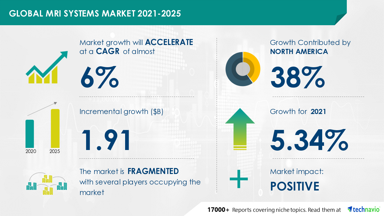 LONDON--(BUSINESS WIRE)--The MRI systems market is poised to grow by USD 1.91 billion during 2021-2025 progressing at a CAGR of almost 6% during the forecast period.