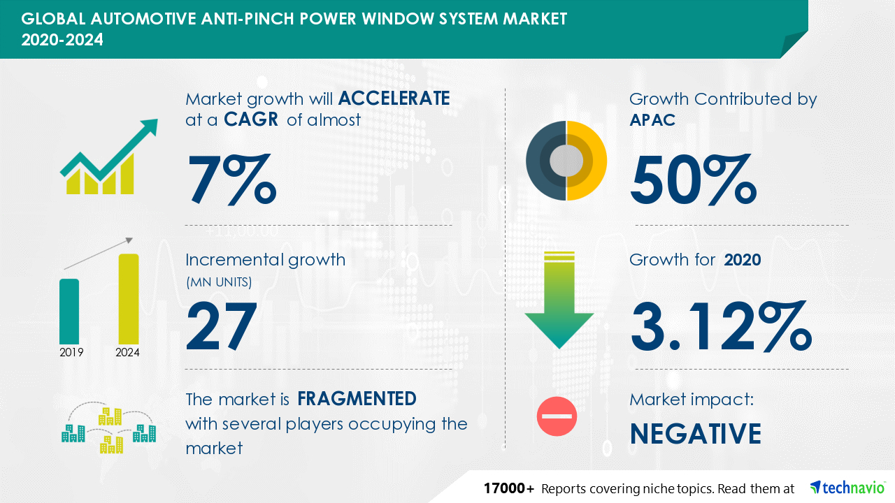 Global Automotive Anti-Pinch Power Window System Market to Grow by 27 Million Units During 2020-2024 | Featuring Aisin Seiki Co. Ltd., Brose Fahrzeugteile SE & Co. KG, and Continental AG among others | Technavio