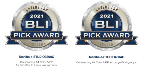 LAKE FOREST, Calif.--(BUSINESS WIRE)--Global market intelligence company Keypoint Intelligence acknowledges Toshiba America Business Solutions' commitment to innovation by presenting the multifunction printer (MFP) provider two Buyers Lab 2021 Winter Pick Awards. Toshiba's latest color, letter-size (A4) e‑STUDIO™330AC and e-STUDIO400AC MFPs won the awards by blending ease of use, dynamic features and exceptional value.