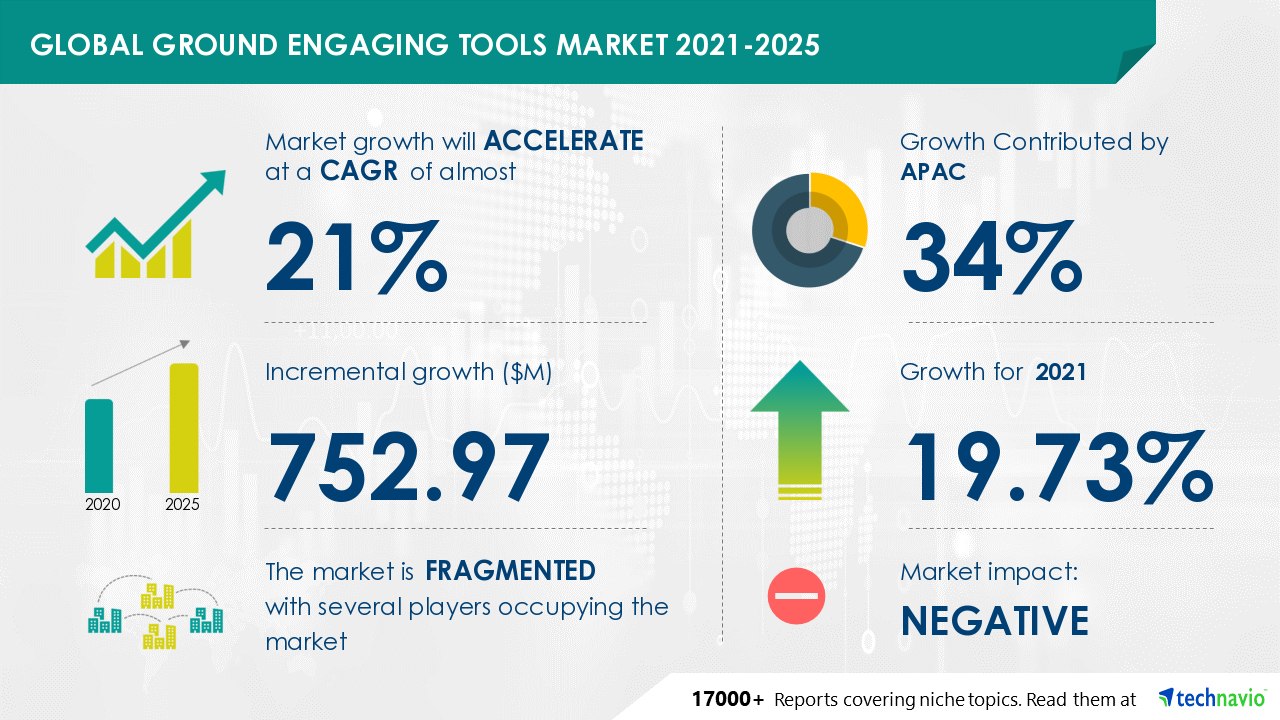 "One of the primary growth drivers for this market is the increase in the number of smart cities,” says a senior analyst for the industrials industry at Technavio. The market vendors should focus more on the growth prospects in the fast-growing segments while maintaining their positions in the slow-growing segments. As the markets recover, Technavio expects the ground engaging tools market size to grow by USD 752.97 million during the period 2021-2025.