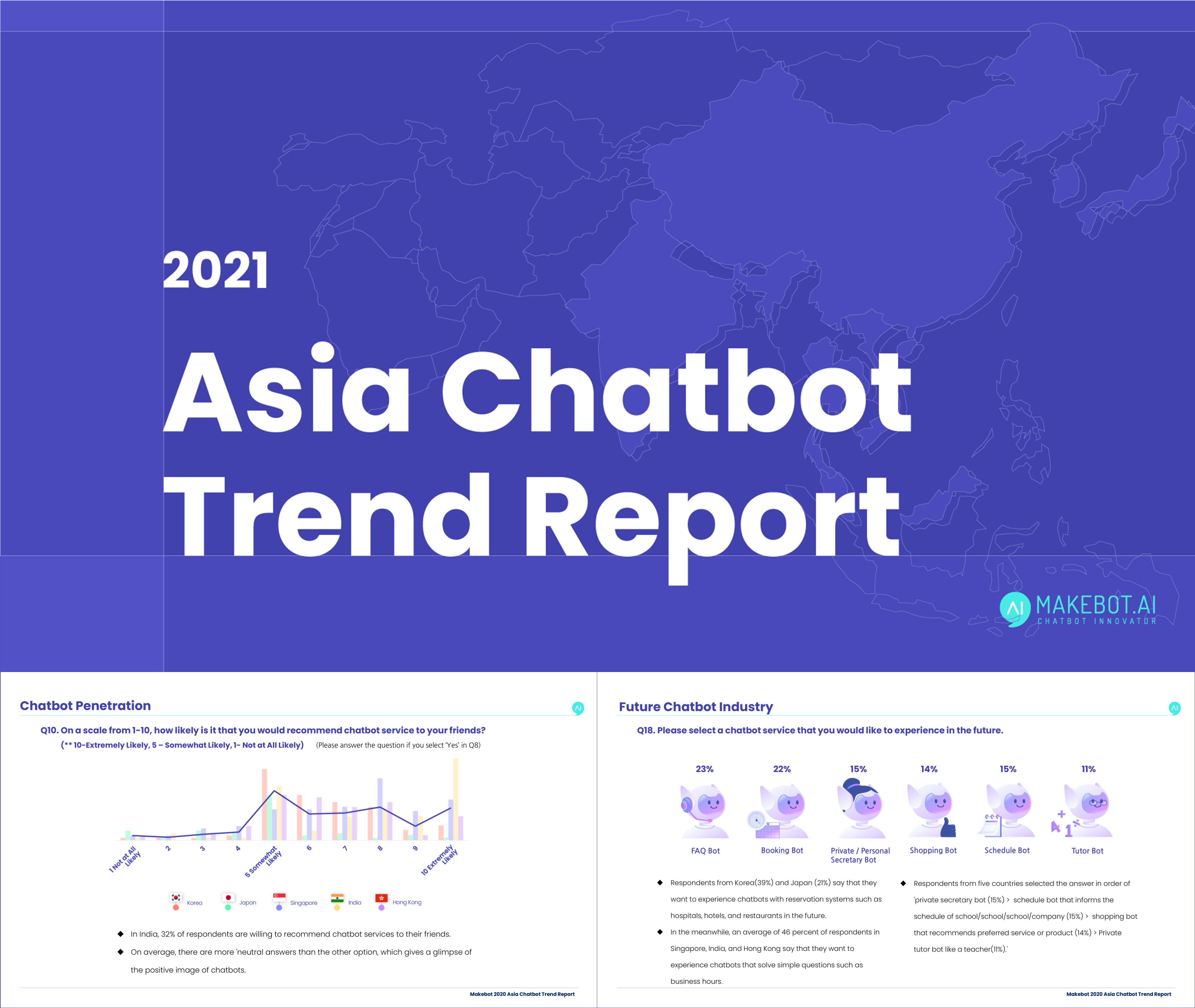 Makebotは、2018年から毎年チャットボットトレンドレポートを発表して、チャットボットに対する認識の変化やチャットボット産業の進むべき方向性を模索し続けてきた。今回のレポートでは、香港、シンガポール、インド、日本、韓国のアジア5か国を選定して、各国におけるチャットボットに対する認識について調査し、注目を集めた。