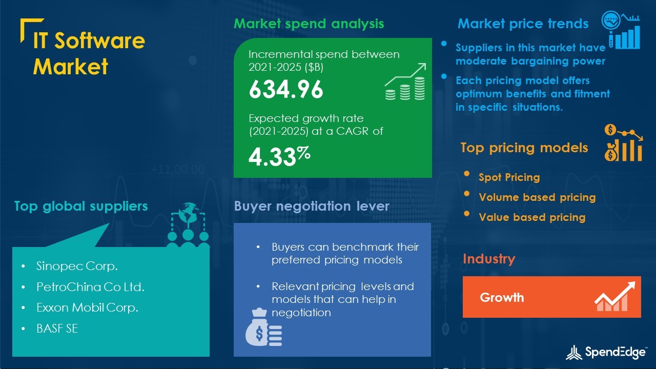 LONDON--(BUSINESS WIRE)--The IT Software Market is poised to experience spend growth of more than USD 634.96 billion between 2021-2025 at a CAGR of over 4.33%. The report also provides the market impact and new opportunities created due to the COVID-19 pandemic. Request free sample pages
