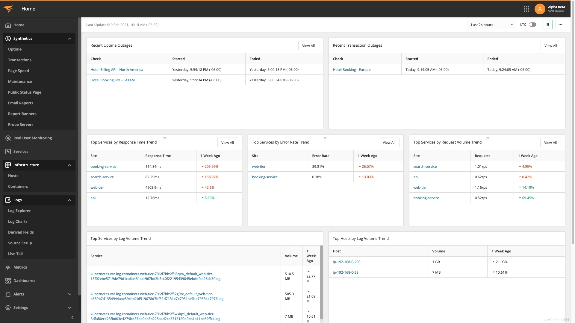 - Home: A new landing page with a high-level view of what’s changed in the last week and what could be an issue