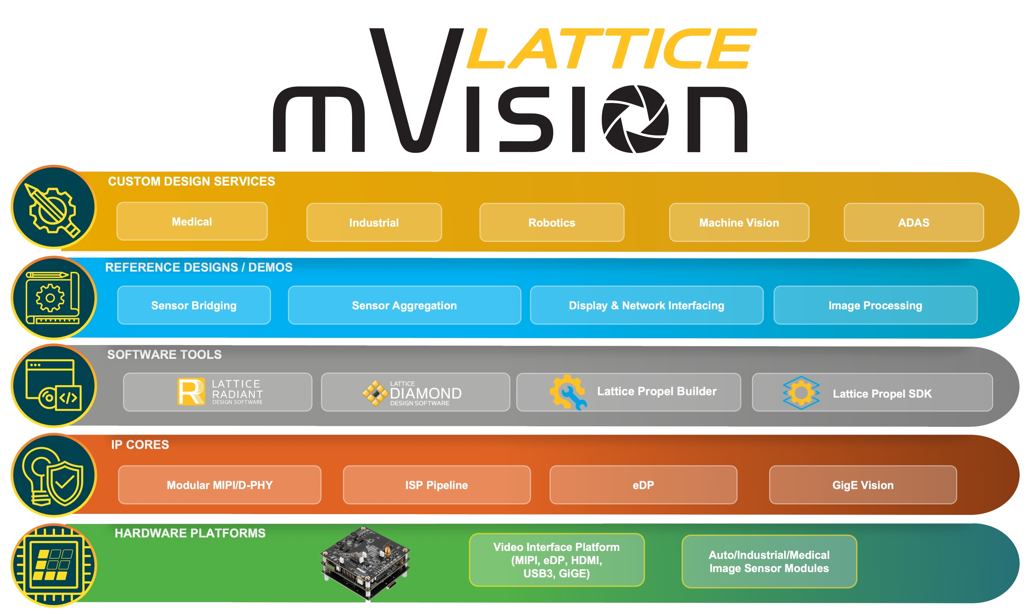 HILLSBORO, Ore.--(BUSINESS WIRE)--Lattice Semiconductor Corporation (NASDAQ: LSCC), de programmeerbare leider met laag vermogen, lanceerde de nieuwste versie van zijn bekroonde oplossingenstapel voor ingebedde vision-systemen met laag vermogen, Lattice mVision™ 2.0. De nieuwe versie bevat meerdere updates die het ontwerp van embedded vision-applicaties voor industriële, automotive, medische en slimme consumentensystemen verder versnellen. Het omvat ondersteuning voor populaire nieuwe beeldsensoren die worden gebruikt in industriële en autosystemen en een nieuwe IP-kern voor beeldsignaalverwerking en referentieontwerp om ontwikkelaars te helpen bij het ontwerpen van slimme vision-toepassingen op de Edge. De stack bevat ook ondersteuning voor de Lattice Propel™ -ontwerpomgeving om de ontwikkeling van vision-systemen met een ingebouwde RISC-V-processor te vereenvoudigen.