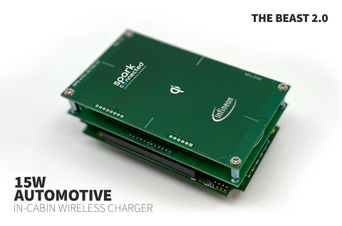 DALLAS--(BUSINESS WIRE)--Spark Connected, (www.sparkconnected.com) a global leader in developing advanced and innovative wireless power technology and system-level solutions, announces The Beast 2.0 – the industry’s first 15 Watt automotive in-cabin wireless charging solution that meets the latest Qi requirements.