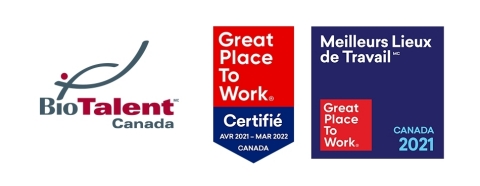 Figurant depuis peu sur la liste des 50 meilleurs lieux de travail au Canada dans la catégorie des employeurs ayant entre 10 à 50 employés. Ainsi que détenteur de la certification Great Place to WorkMD 2021, BioTalent Canada applique en son sein les mêmes normes que celles qu’elle recommande à ses partenaires. Ces distinctions lui ont été attribuées après une analyse rigoureuse et indépendante effectuée par Great Place to WorkMD.