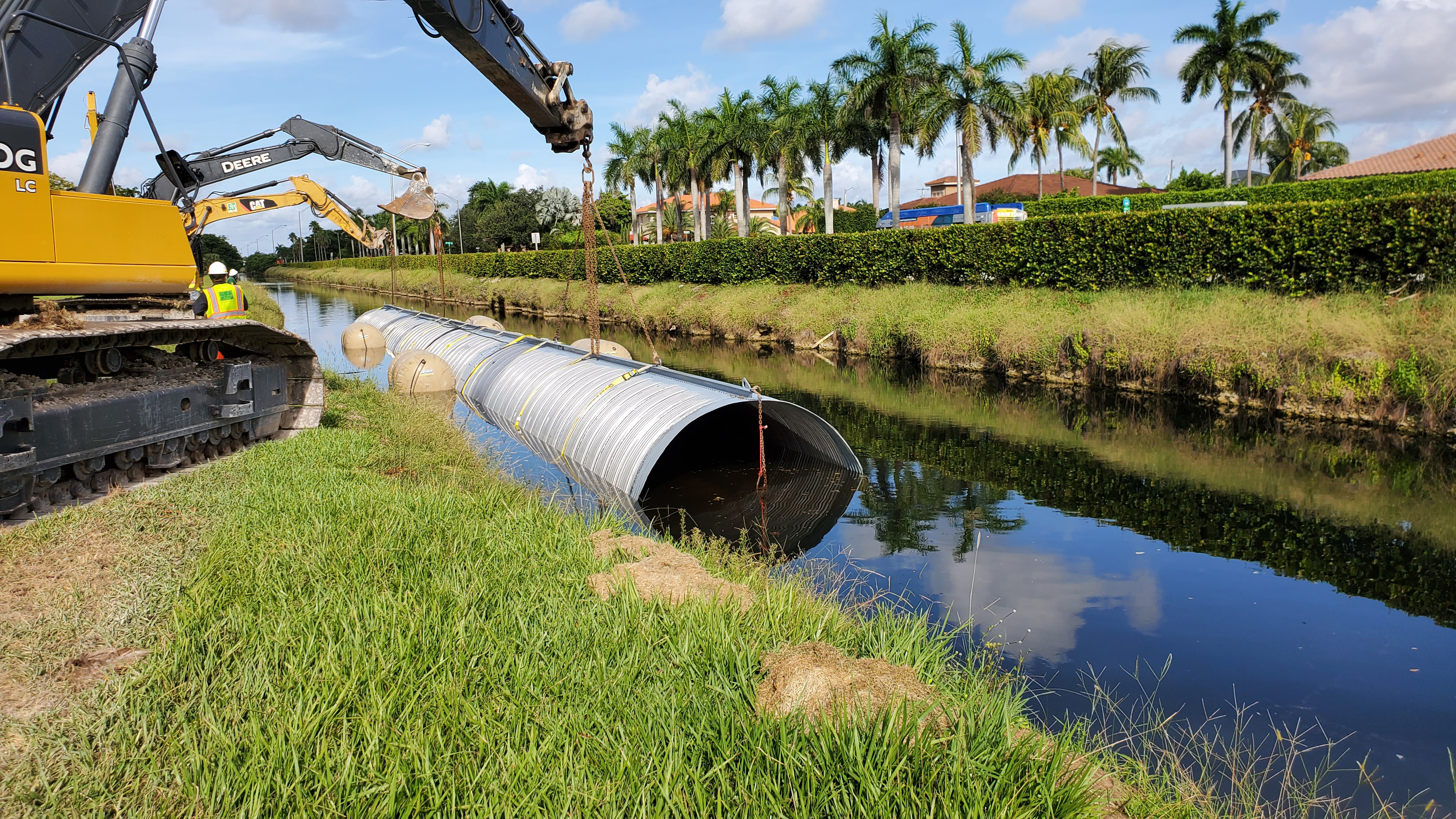 Miami-Dade County and David Mancini & Sons, Inc utilized a HEL-COR® ALT2 solution manufactured by Contech Engineered Solutions to reline an existing culvert. To complete the emergency culvert reline, the 137.5 LF of 120-inch HEL-COR liner pipe was installed in a completely submerged condition.