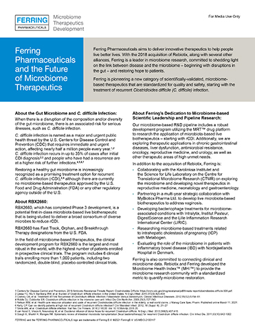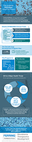 Ferring e Rebiotix presentano dati di Fase 3 che dimostrano un'efficacia superiore del farmaco sperimentale RBX2660 rispetto al placebo nel ridurre le recidive dell'infezione da C. difficile