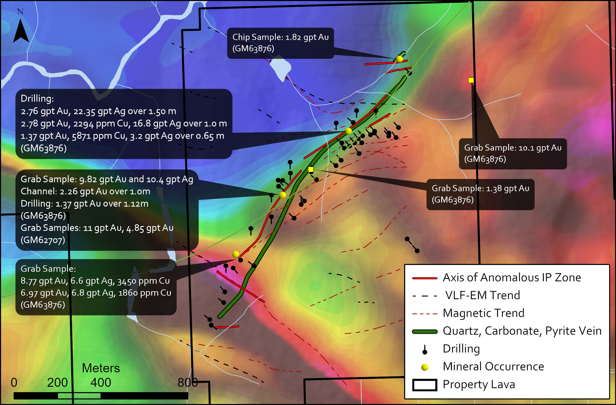 Hawkmoon se propose de réinterpréter les travaux réalisés précédemment sur la Propriété. Cela comprendrait notamment des études d'inversion 2D sur les données de polarisation provoquée (« PP») et de résistivité de 20072 ainsi que la modélisation en 3D du forage historique au diamant réalisé sur Lava. Hawkmoon a l’intention de mener un programme d’excavation de tranchées et d’échantillonnage de roches afin de déterminer les objectifs de forage le long de la LSZ. Ces travaux devraient commencer cet été.