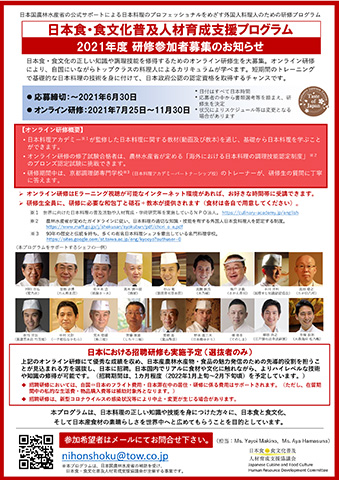 日本料理与饮食文化人力资源发展委员会(日本东京)2021年线上课程现在开始接受报名
