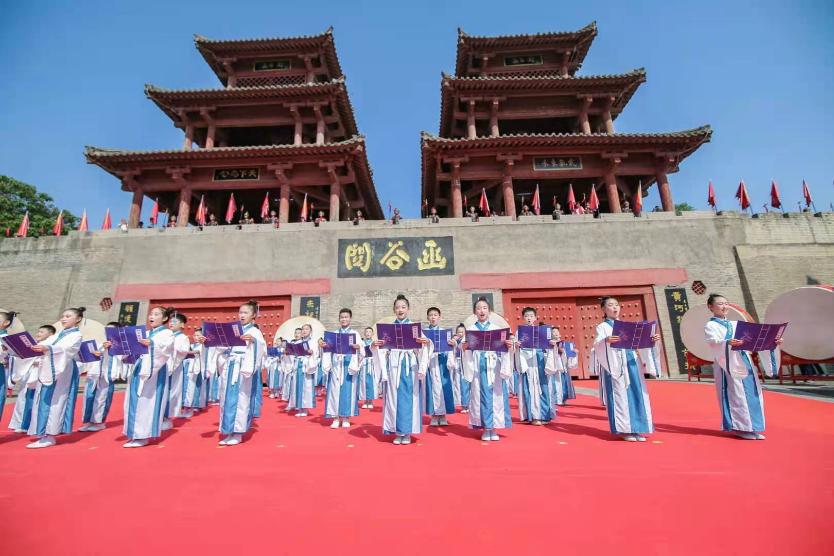 At 8 o’clock in the morning on the 10th day of June, the guests invited to the forum arrived in the Gate Tower Square at the Hangu Gate, with bamboo slips of Tao Te Ching in their hands. The actors in ancient costumes playing the roles of Junxi, an officer at the frontier pass, and of soldiers, opened the gate to the pass and greeted the guest. The guests entered the Hangu Gate and climbed a height to gain a view of distant places, looking back on the story of Laozi writing Tao Te Ching here, and they marked the occasion by writing signatures one after another on the wall, visited the library of Tao Te Ching, experiencing on site the classic charms of the “famous name, famous pass, and famous works.”