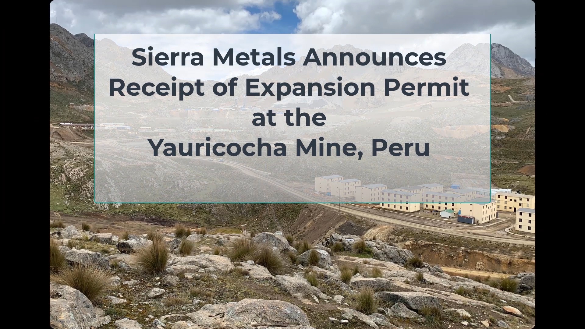 Sierra Metals Announces Receipt of Permit Allowing for a 20% Increase of Throughput to 3,600 Tonnes Per Day at Its Yauricocha Mine in Peru