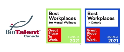 OTTAWA, Ontario--(BUSINESS WIRE)--BioTalent Canada is proud to announce that it has been named to the 2021 list of Best Workplaces for Mental Wellness. In addition, the organization has also been named a Great Place to Work in Ontario for the second consecutive year. Both awards come from Great Place to Work®.