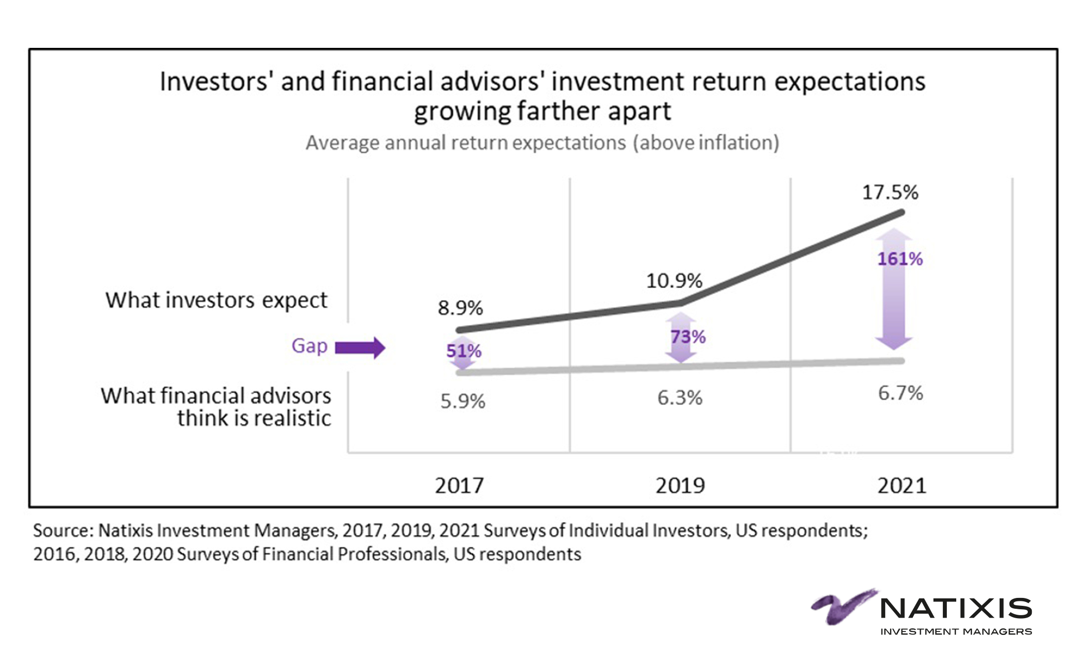 1 2019 Natixis Survey of Canadian Individual Investors found investors’ long-term annual return expectations were 9.7% above inflation
