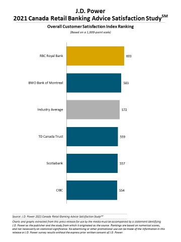TORONTO--(BUSINESS WIRE)--Les banques de détail canadiennes ont trouvé une formule efficace pour satisfaire leurs clients en leur fournissant des conseils financiers à un moment où nombre d'entre eux en ont grandement besoin. Selon l'étude de J.D. Power sur la satisfaction à l'égard des conseils fournis par les banques de détail au Canada en 2021,SM publiée par aujourd'hui, 74 % des clients qui bénéficient de conseils de leur banque mettent ces conseils en pratique. Ce résultat est d’autant plus intéressant que seulement 39 % des clients des banques de détail canadiennes ont une bonne santé financière et seulement 42 % réussissent un test de littératie financière de base.