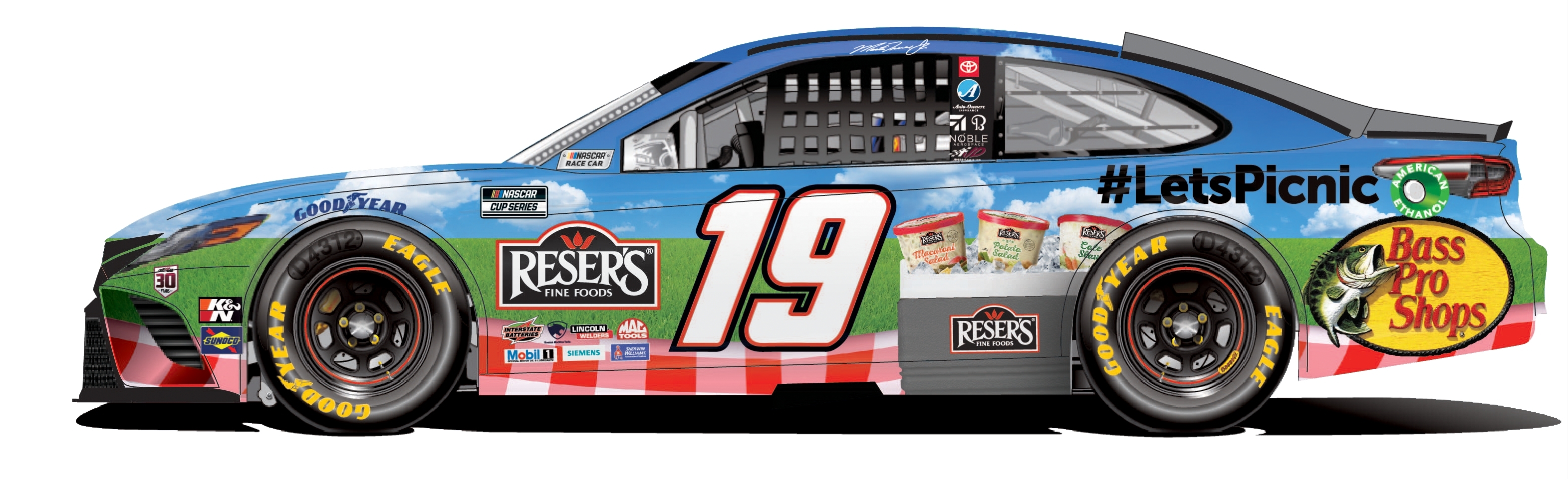 BEAVERTON, Ore.--(BUSINESS WIRE)--Reser’s Fine Foods is debuting a new paint scheme for this weekend’s NASCAR Cup Series race at New Hampshire Motor Speedway. Race fans will notice a major departure from their traditional red and black racing look. Martin Truex Jr.’s No.19 Joe Gibbs Racing Toyota Camry will showcase a #LetsPicnic themed car just in time for a big season of summer picnics.