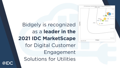 MOUNTAIN VIEW, California--(BUSINESS WIRE)--Nel nuovo rapporto stilato da IDC MarketScape a cura di International Data Corporation (IDC), Bidgely viene riconosciuta come “Leader” nella fornitura di soluzioni per il coinvolgimento digitale dell’utenza delle aziende di pubblica utilità in tutto il mondo. Il rapporto intitolato IDC MarketScape: Worldwide Digital Customer Engagement Solutions for Utilities 2021 Vendor Assessment (IDC MarketScape: Valutazione dei fornitori di soluzioni globali per il coinvolgimento digitale dell’utenza per le aziende di pubblica utilità 2021) (IDC n. US46149620, giugno 2021), in cui sono stati valutati 10 fornitori di soluzioni, riconosce il successo di Bidgely nel consentire alle aziende di pubblica utilità di conseguire non solo il coinvolgimento dell’utenza estremamente personalizzato, ma anche gli relativi obiettivi operativi. Bidgely è una delle sole tre società ad essere state incluse nella categoria “Leader”.
