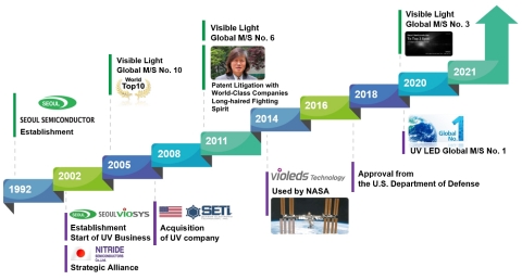ANSAN, Coreia do Sul--(BUSINESS WIRE)--A Seoul Viosys (KOSDAQ: 092190), fornecedora líder mundial de dispositivos de semicondutores compostos e subsidiária da Seoul Semiconductor, anunciou ter confirmado que a variante Delta da COVID-19 altamente infecciosa (SARS-CoV-2: B.1.617.2) foi desinfetada (inativada) em 99,3% em um segundo de acordo com um experimento de desinfecção de superfície usando a tecnologia Violeds conduzido pela equipe de pesquisa da Universidade da Coreia em julho de 2021. No experimento de desinfecção do ar usando a tecnologia Violeds conduzido no laboratório da Seoul Viosys (60㎥), o vírus foi reduzido em 90% em 10 minutos.