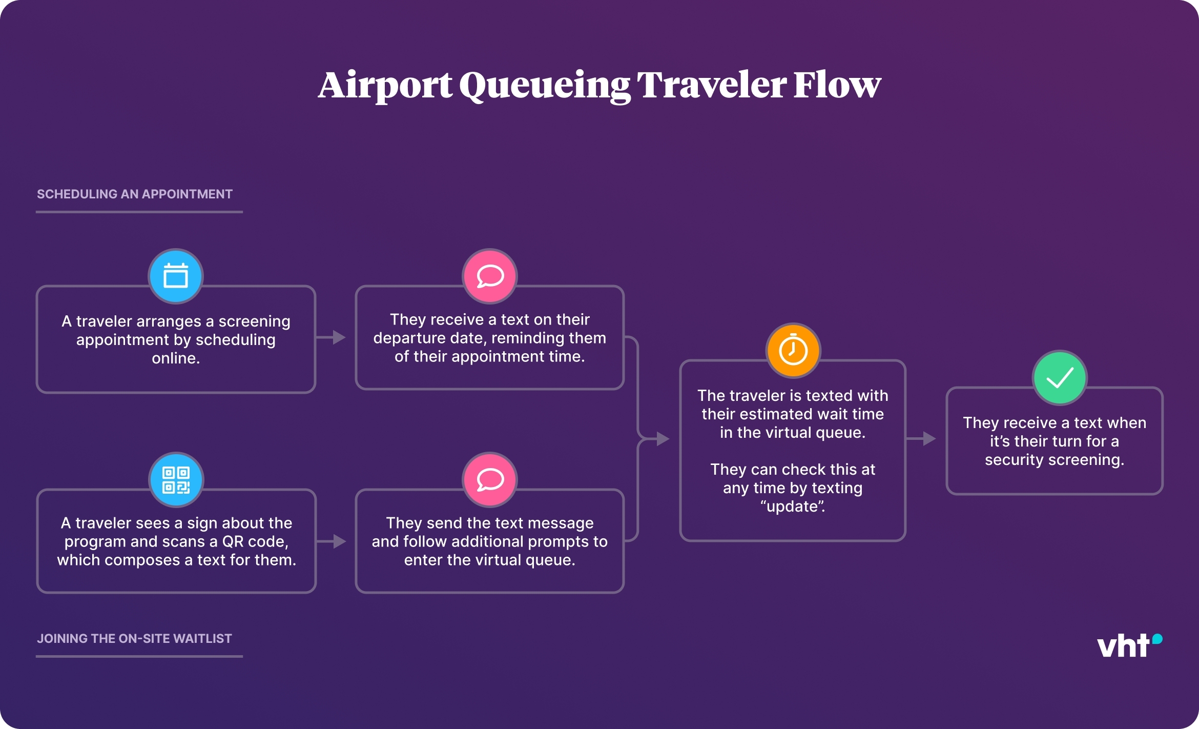 - To understand how it works, read more about VHT’s Airport Queueing Solution.