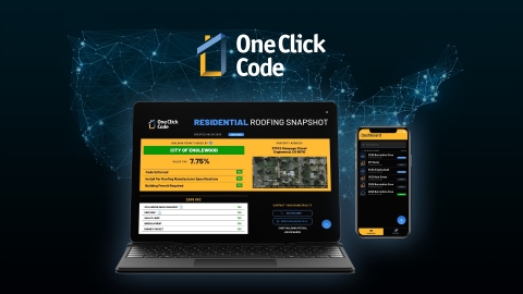 Contractors and adjusters are using outdated, manual systems to gather building code information to create roofing estimates leaving money on the table and wasting massive amounts of time. The only roofing technology app to automate building codes for properties across the nation, OneClick Code, gives you the accurate information you need in the click of a button and the documentation to back it up. OneClick Code is a trusted data partner, dedicated to increasing efficiency and transparency for all. When we all have the right information, we all win. Save an hour on every roof and start building defensible estimates in OneClick. (Graphic: Business Wire)