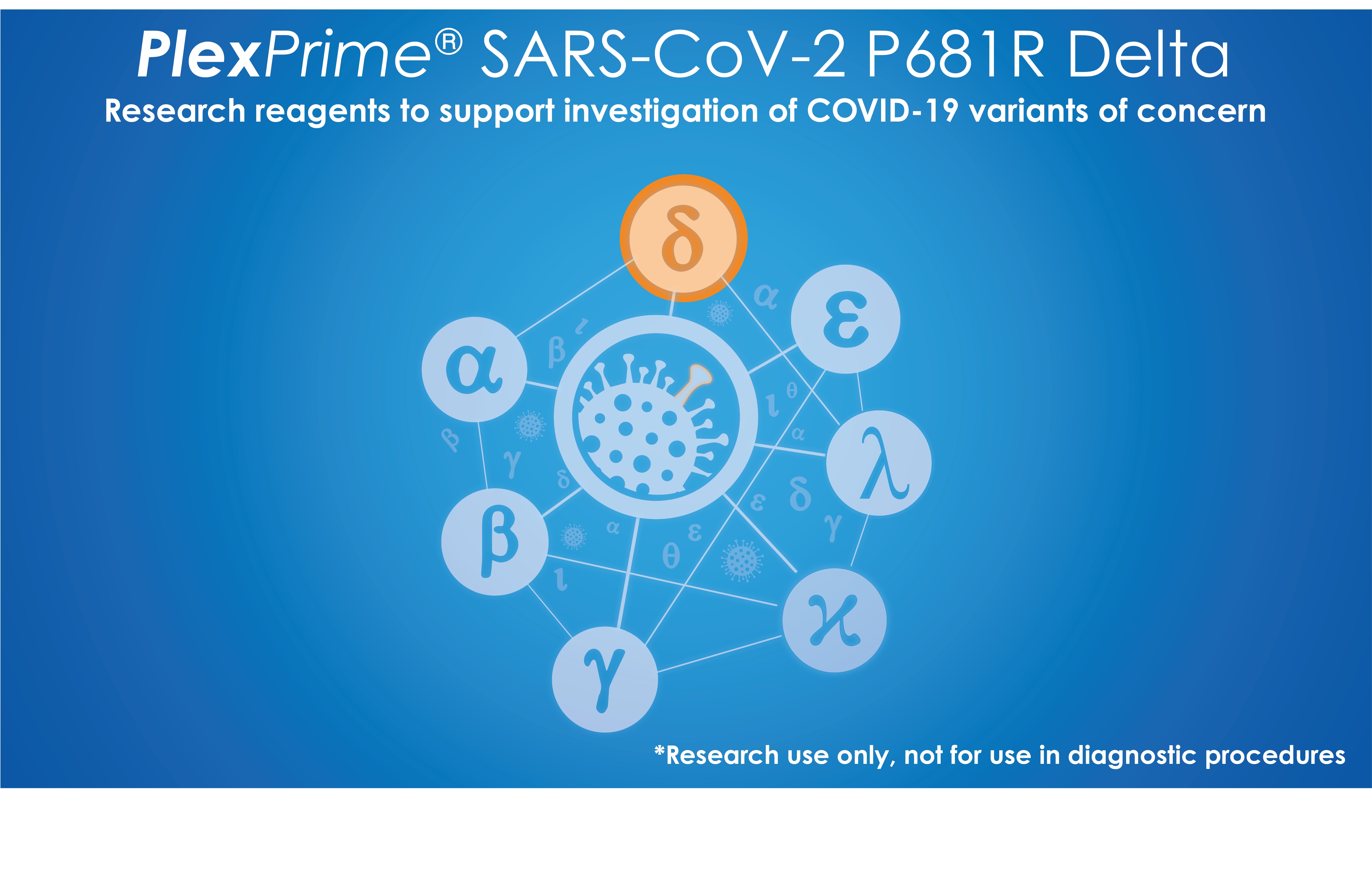 PlexPrime® SARS-CoV-2 P681R Delta*是一種單孔混合試劑,旨在檢測B.1.617.2 (Delta) VOC中發現的SARS-CoV-2的P681R棘蛋白突變1,以及SARS-CoV-2的RdRp基因標靶。該試劑是PlexPrime® SARS-CoV-2基因分型產品組合中的第二款產品,能用作獨立反射或與PlexPrime® SARS-CoV-2 Alpha/Beta/Gamma+並行使用。上述檢測與標準qPCR儀器相容,並能與液體處理自動化搭配使用,透過僅將下游活動集中在關注的關鍵樣本上,來減少為序列分析準備陽性樣本的手動過程。