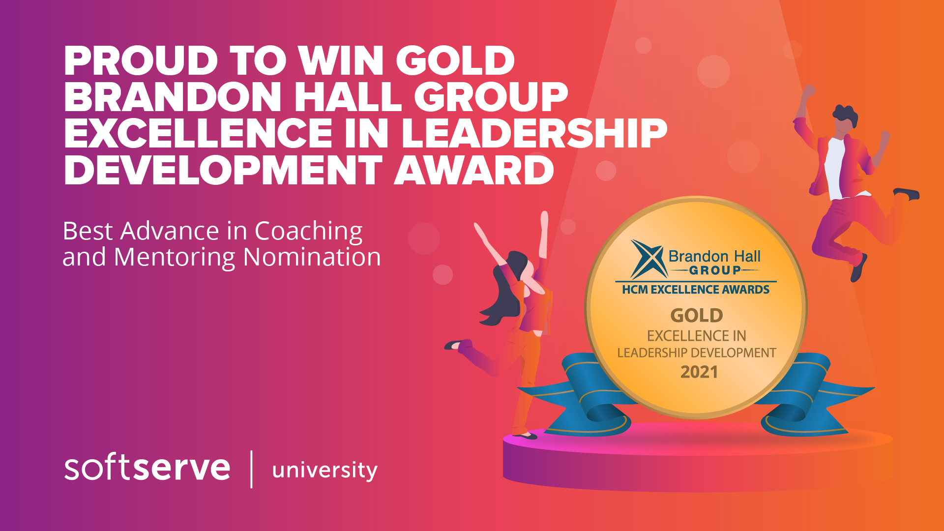 AUSTIN, Texas--(BUSINESS WIRE)--SoftServe, una autoridad digital y una empresa de asesoría líder, ha ganado el oro en la nominación al mejor avance en coaching y mentoría en los premios de 2021 otorgados por Brandon Hall Group a la excelencia en el desarrollo del liderazgo. La compañía fue reconocida por un ecosistema de aprendizaje único que implementa prácticas de mentoría y coaching para ayudar a sus socios a crecer, adquirir nuevas competencias y perfeccionar sus habilidades de liderazgo.
