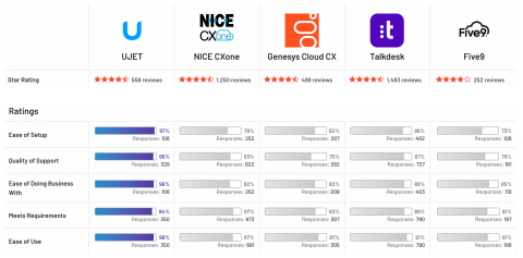 SAN FRANCISCO--(BUSINESS WIRE)--UJET, Inc., the world’s first and only CCaaS 3.0 cloud contact center provider, has been named the leader in G2’s Fall Grid® Report for Overall Satisfaction in Contact Center Operations Software. Based on actual product user reviews, G2 reports that UJET consistently receives the highest satisfaction ratings in the industry, beating out major players in the contact center space.