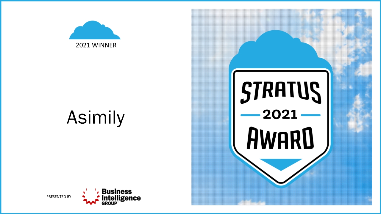 SUNNYVALE, Calif.--(BUSINESS WIRE)--Asimily, a leading provider of Internet of Medical Things (IoMT) risk management platform, today announced that its IoMT platform was awarded a 2021 Stratus Award by The Business Intelligence Group for outstanding achievement in Cloud Computing. This honor recognizes companies, products and people that are offering unique solutions that take advantage of cloud technologies.