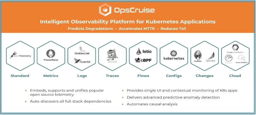 “I’ve seen and used a number of application monitoring offerings over the past couple of decades. For end-to-end Kubernetes observability in a cloud native deployment, nothing stacks up like OpsCruise,” said Bruno Pisano, CEO of Elafent, a cloud business analytics platform. “It’s simple and straightforward to set up, leverages open source standards & tools so there’s no lock-in and aggregates all the required data points so my team doesn’t have to do the heavy lifting. We’re finding and solving problems much faster, without having to stitch together multiple disparate proprietary tools!”