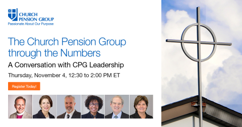 NEW YORK--(BUSINESS WIRE)--The Church Pension Group (CPG), a financial services organization that serves The Episcopal Church, announced that it will host a virtual panel conversation with Bishop Thomas J. Brown, Chair of The Church Pension Fund Board of Trustees; Mary Kate Wold, CEO and President of CPG; and other CPG leaders, for a discussion about CPG’s vision, finances, and work.