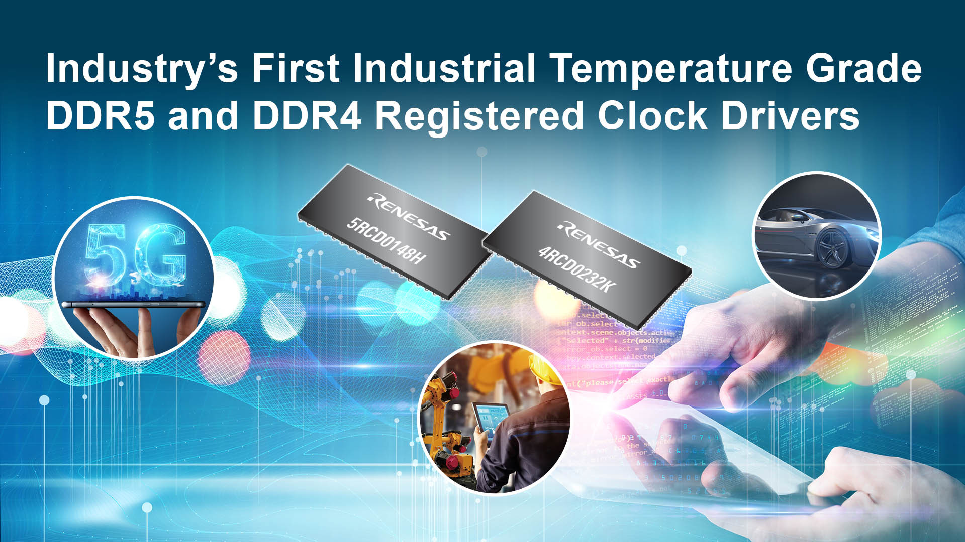 TOKYO--(BUSINESS WIRE)--Renesas Electronics Corporation (TSE:6723), a premier supplier of advanced semiconductor solutions, today introduced the industry’s first industrial temperature DDR5 (5RCD0148H) and DDR4 (4RCD0232K) registered clock drivers (RCDs). The new devices are targeted at demanding applications such as edge computing, automotive vehicles, industry 4.0, and 5G applications.