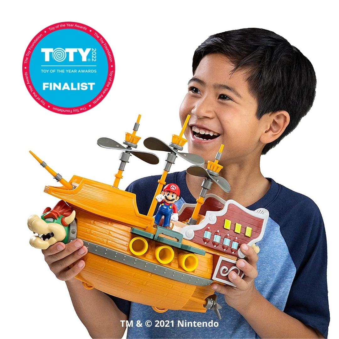 Customers can find the TOTY nominated Deluxe Bowser's Airship for $39.99 at select retailers. Some of the feature mechanisms include spinning propellers and rocking motion wheels. It also plays recognizable sounds from the game like the Airship Fortress song, Bowser's laugh and roar, and cannon fire sound effects. This awesome playset includes a 2.5 inch Mario figure and opens up to store other Super Mario 2.5 inch and 4 inch figures.