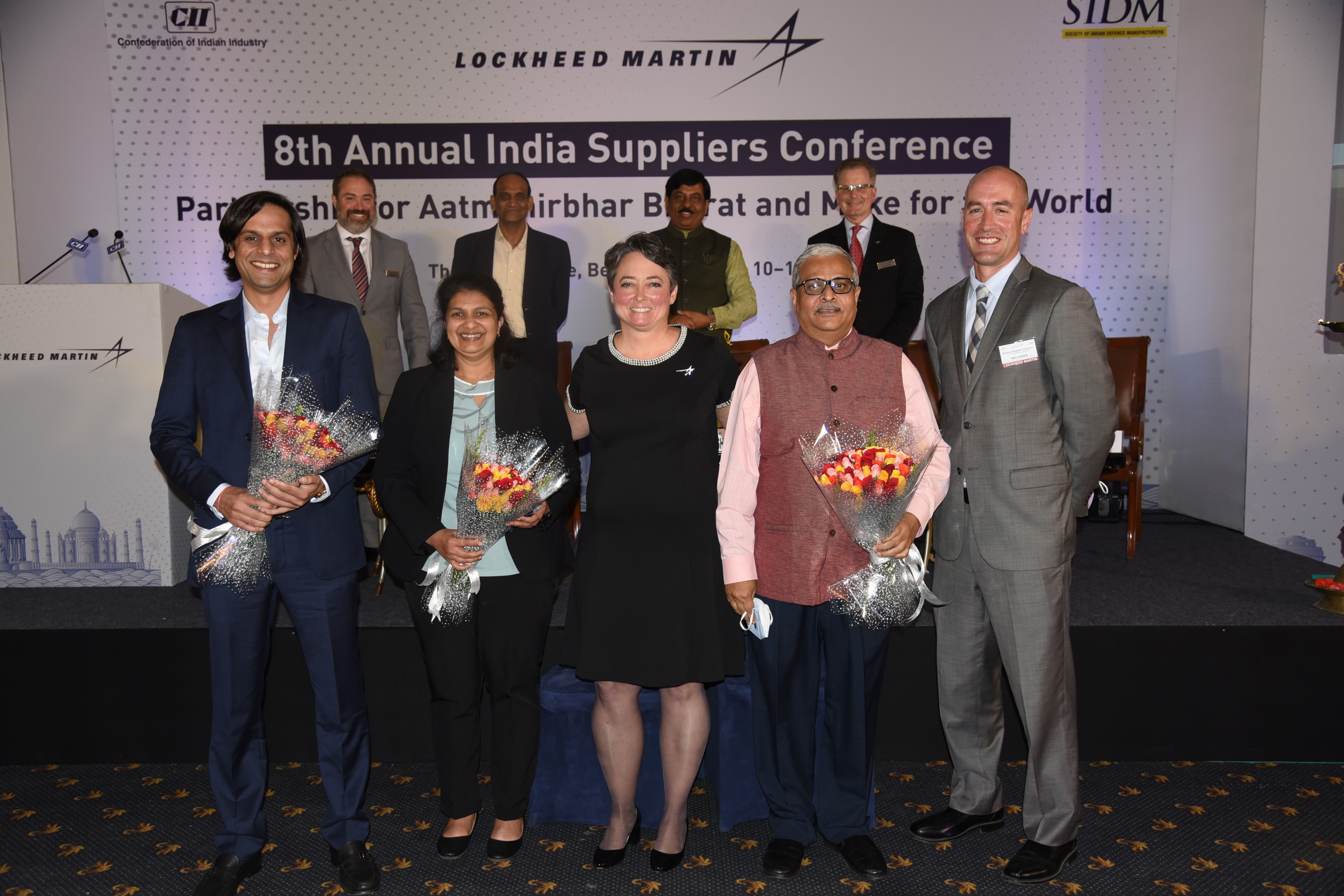 L-R: Rishab Mohan Gupta, Promoter and Director- Rossell India Ltd., Zeena Philip, COO- Rossell Techsys, Abby Lilly, VP, Global Supply Chain, Rotary & Mission Systems- Lockheed Martin, Prabhat Kumar Bhagvandas, CEO- Rossell Techsys, Greg Laubisch, Director, RMS SC- Lockheed Martin at the recognition ceremony. (Photo: Business Wire)