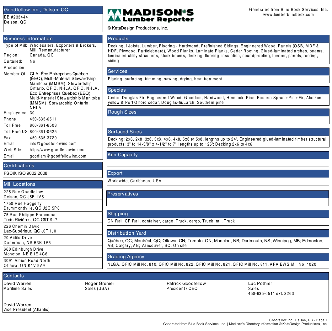 Sample Madison’s Sawmill Lumber Directory Listing Let us help you find all the lumber you need! Madison’s 2021 Online Lumber Directory is far more than just a list of names and addresses. It is the most expertly researched and thoroughly cross-referenced directory available on the Canadian forest industry. Madison’s shows you who produces what, then puts you in touch with sales managers and key contacts in the Canadian forest products industry. It will prove its value to you every single day, because we designed it to make your job easier. (Photo: Business Wire)