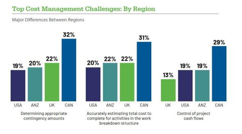 - Et, bien qu’un grand nombre de répondants canadiens aient indiqué qu’ils savent à tout moment où ils gagnent ou perdent de l’argent sur un projet ou dans l’ensemble de leur portefeuille, les résultats montrent qu’il y a de la place pour dépenser davantage pour la technologie dont ils ont besoin pour réussir. En effet, 20 % des entreprises canadiennes ont déclaré qu’elles dépensent « le montant qu’il faut » pour la technologie nécessaire aux pratiques de gestion des coûts et 30 % ont déclaré qu’elles dépensent un peu moins ou beaucoup moins qu’elles devraient.