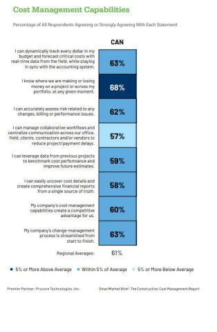 - Soixante-trois pour cent d’entre eux ont déclaré pouvoir suivre de manière dynamique chaque dollar de leur budget et prévoir les coûts critiques avec des données en temps réel provenant du terrain, tout en restant synchronisés avec le système comptable.
