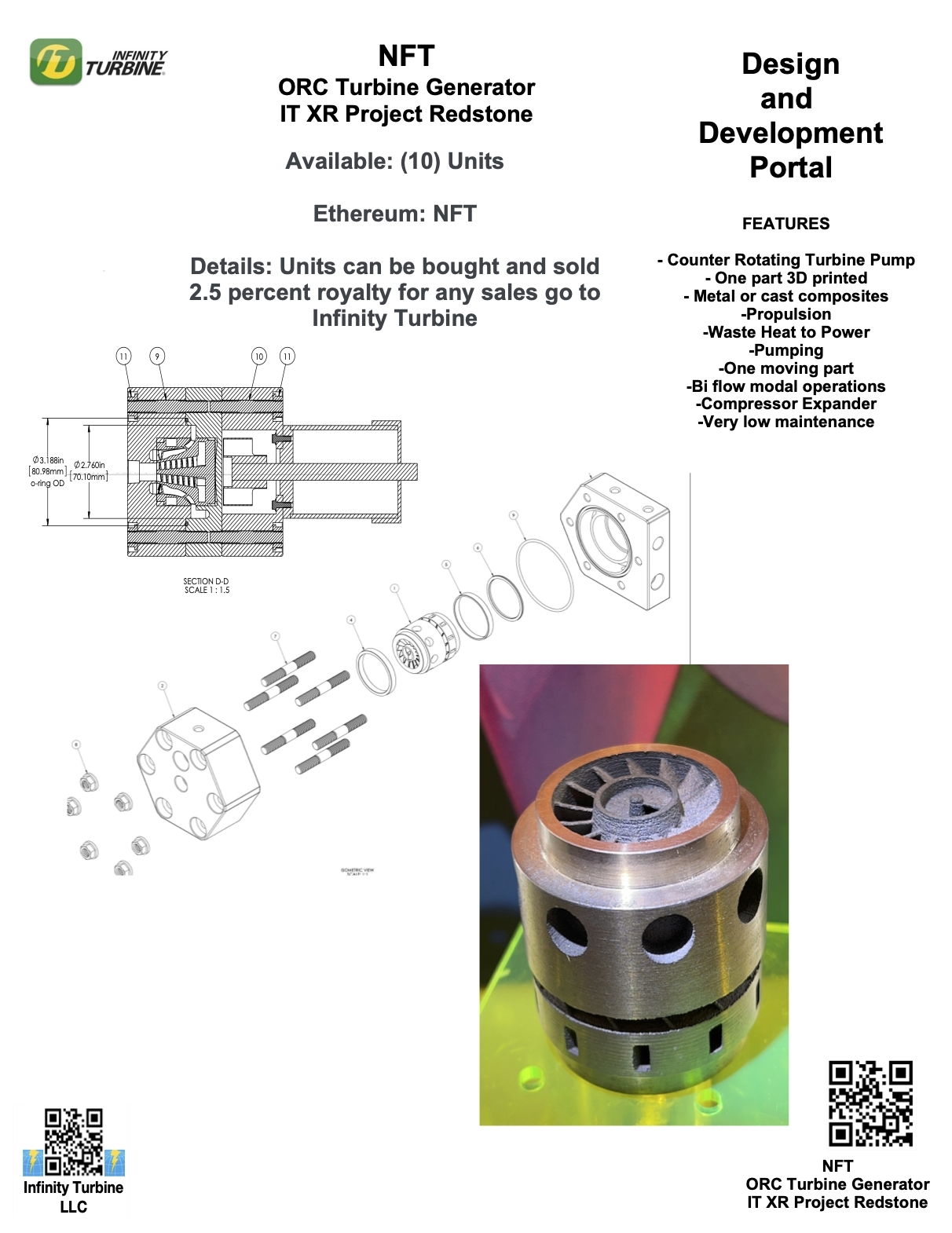 Its first NFT will be Project Redstone, which is a development program from Infinity Turbine LLC which combines decades of innovation into a ground breaking counter-rotating turbine with multiple functions in one moving part.