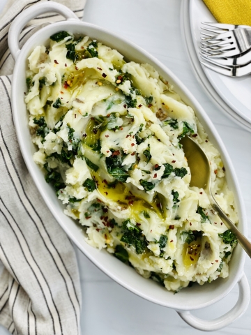 Your daughter’s new boyfriend is a vegan? We’ve got you covered with Vegan Mashed Potatoes with Kale.