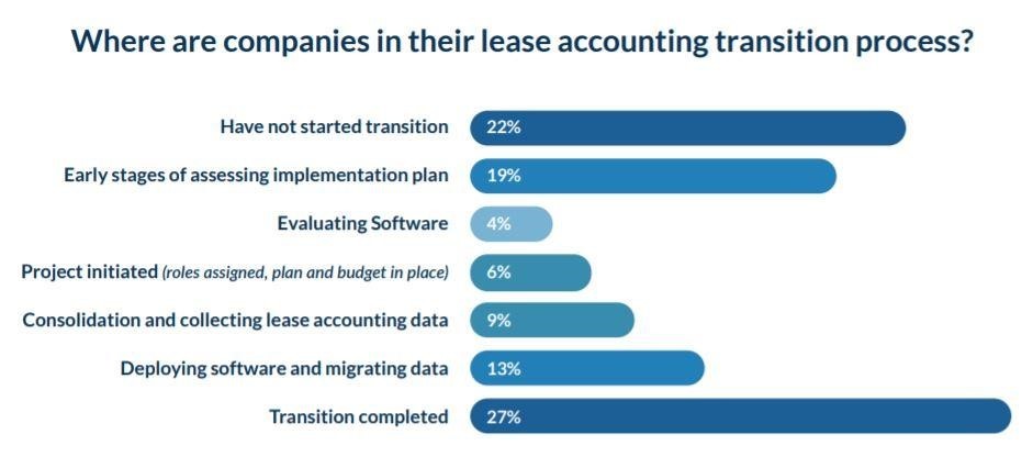 Nearly 40% of private companies surveyed are still in the very early stages of assessing their ASC 842 implementation plan