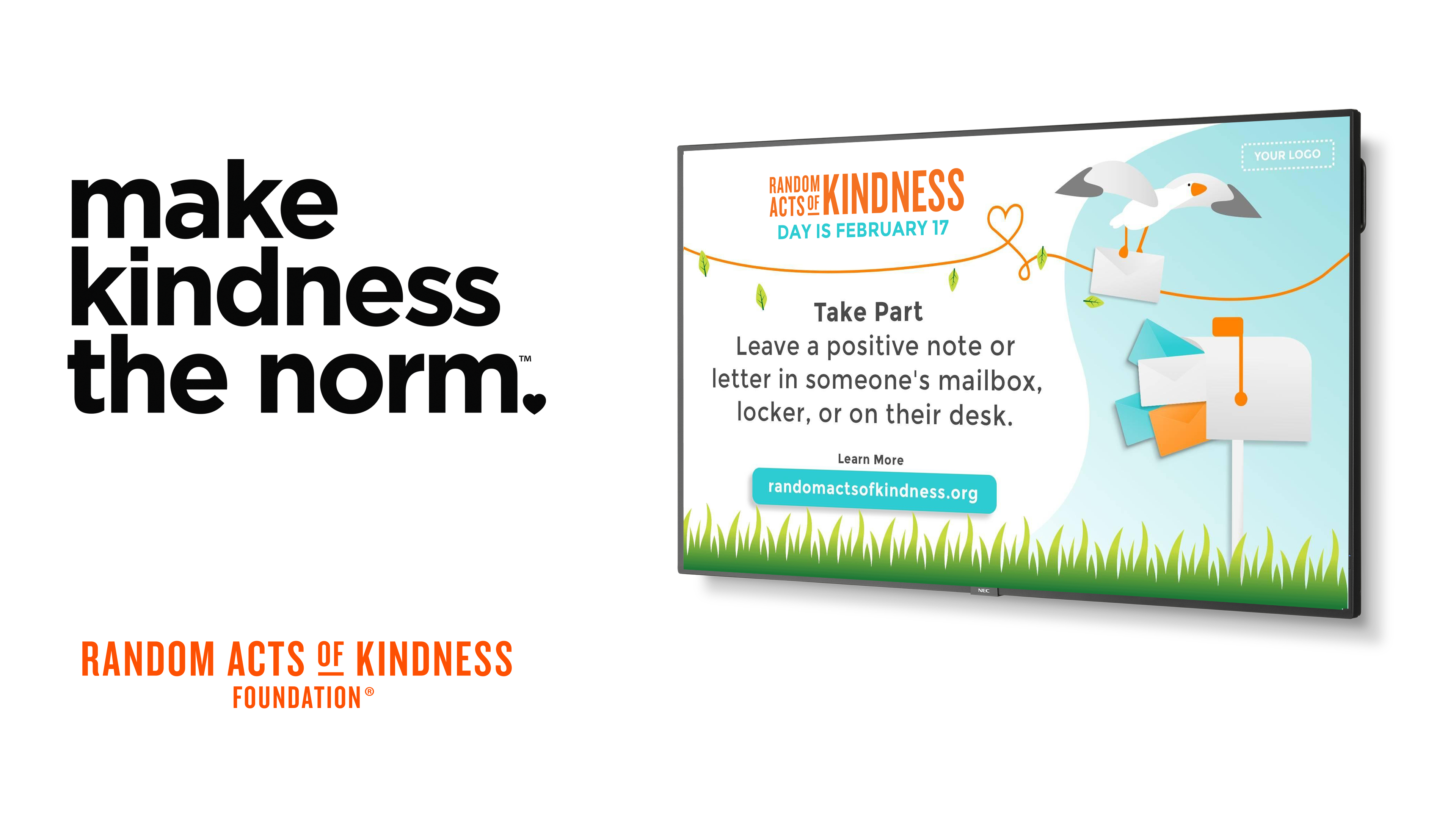 With the new Kindness Calendar template, a new set of kindness ideas will automatically appear each week. By using the World Kindness Day template, schools can celebrate and raise awareness of kindness. And with the Random Acts of Kindness day template, schools can share ideas for random acts of kindness to encourage students to participate. Schools can share these templates on displays throughout their district, classrooms, and common areas to create a more caring and positive culture.