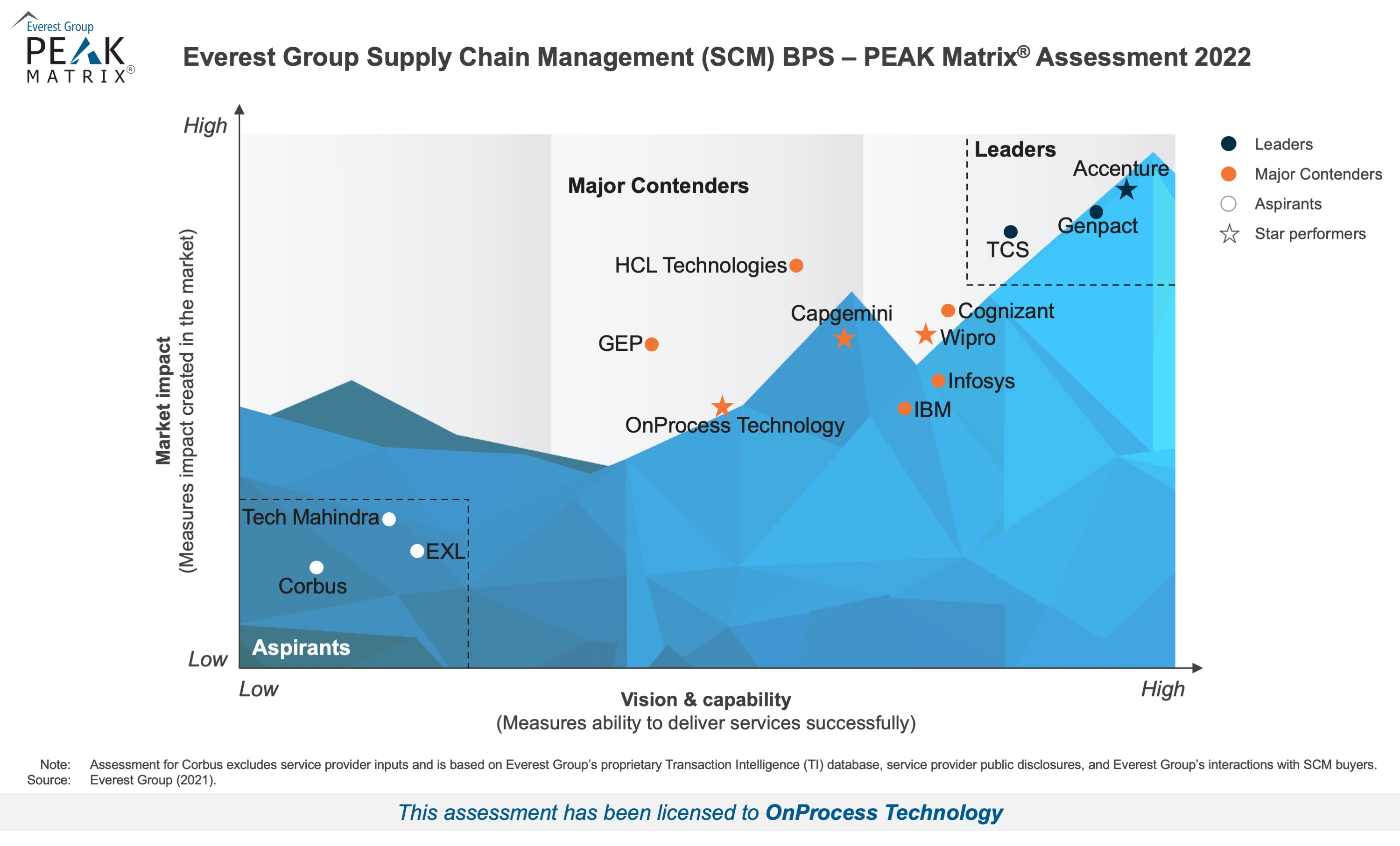 Everest Group evaluó a 14 proveedores de servicios de gestión de la cadena de suministro líderes y ha posicionado a OnProcess como un competidor importante. Además, basándose en la visión, las capacidades y el impacto en el mercado de OnProcess, la empresa ha sido reconocida como una de las cuatro empresas destacadas del informe.