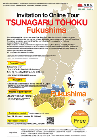 Reconstruction Agency: invito al tour online delle prefetture di “ TSUNAGARU TOHOKU Iwate e Miyagi, e Fukushima ”