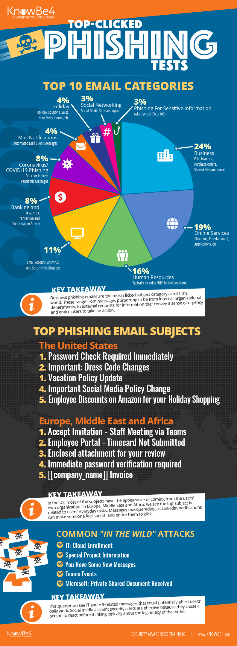 KnowBe4が、米国のフィッシング・メールはパスワード警告や方針変更に関するものが多く、EMEAでは日常業務に関するものが多いことを明らかに