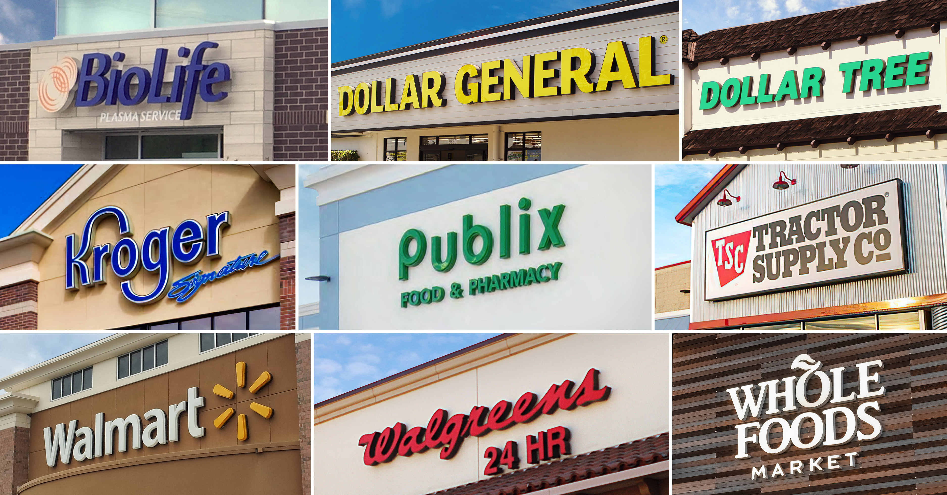 The net-leased properties analyzed and sourced by the firm in 2021 are tenanted by successful providers of grocery, discount, healthcare, auto, banking, and other services. Occupants of the properties include Bank of America, BioLife, CVS Pharmacy, Dollar General, Dollar Tree, Family Dollar, Fresenius Medical Care, Kroger, Octapharma Plasma, Publix, Tractor Supply, Walmart, Walgreens, WellMed, and Whole Foods Market.