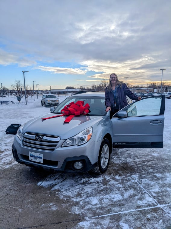 Over the holidays, Kramer Chevrolet and Kramer Subaru launched the giveaway, the first of many. Nominations were open for locals to submit a deserving candidate for a vehicle. With over 125 entries, a committee of community members chose a winner and helped plan the surprise of a lifetime for the lucky recipient, Laurie. In the submission, her colleagues mentioned that Laurie is a mother of two, currently working two jobs, and going to school to become a teacher. The vehicle she was driving was unreliable and not safe to transport herself and her two young children. With countless deficiencies, she was unable to afford the repairs or a new vehicle. Laurie’s colleagues mentioned that she is a hardworking woman very deserving of the donation.